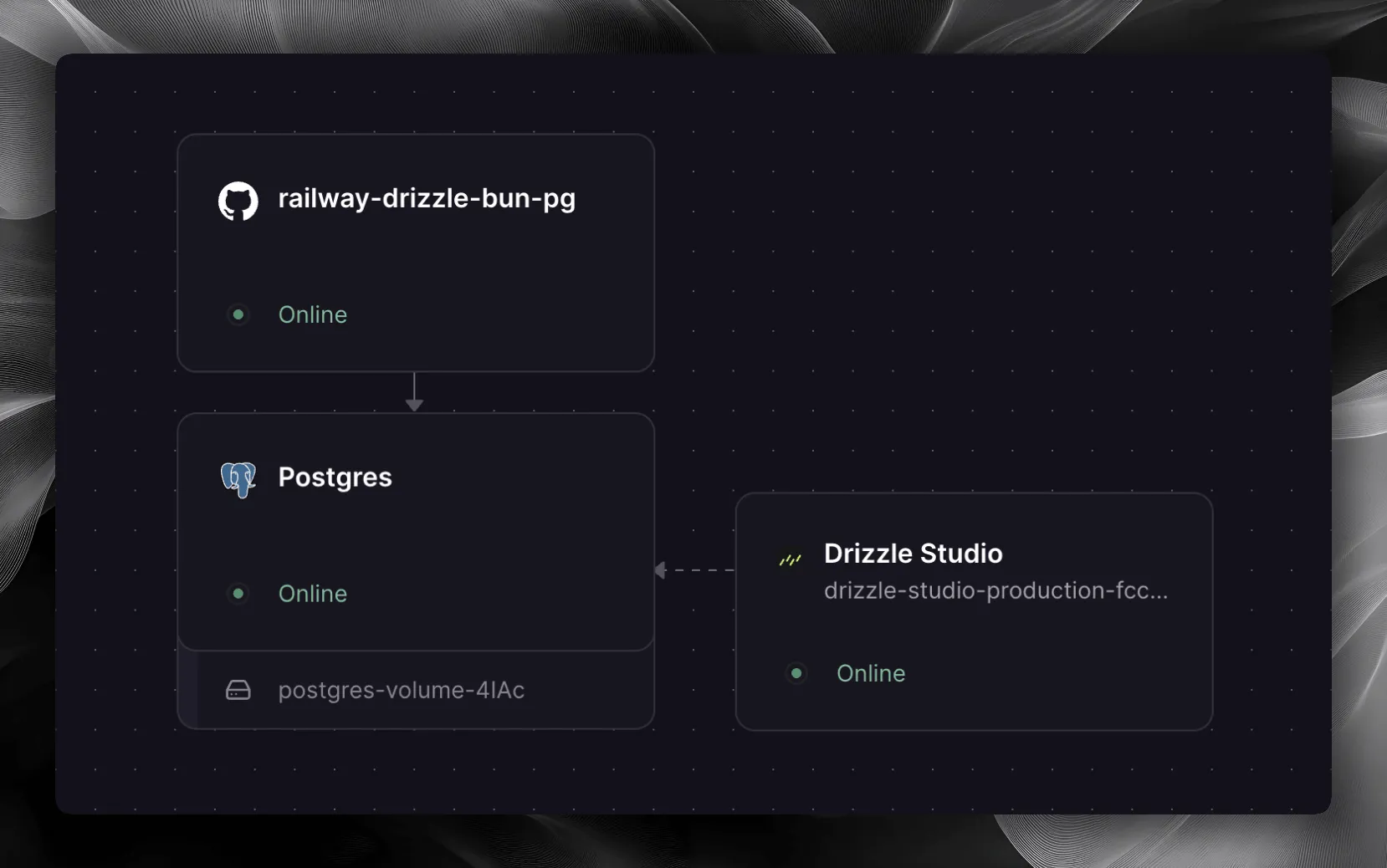 Navigate to the Architecture tab in your Railway project. You should now see three services: your application, the PostgreSQL database, and Drizzle Studio.