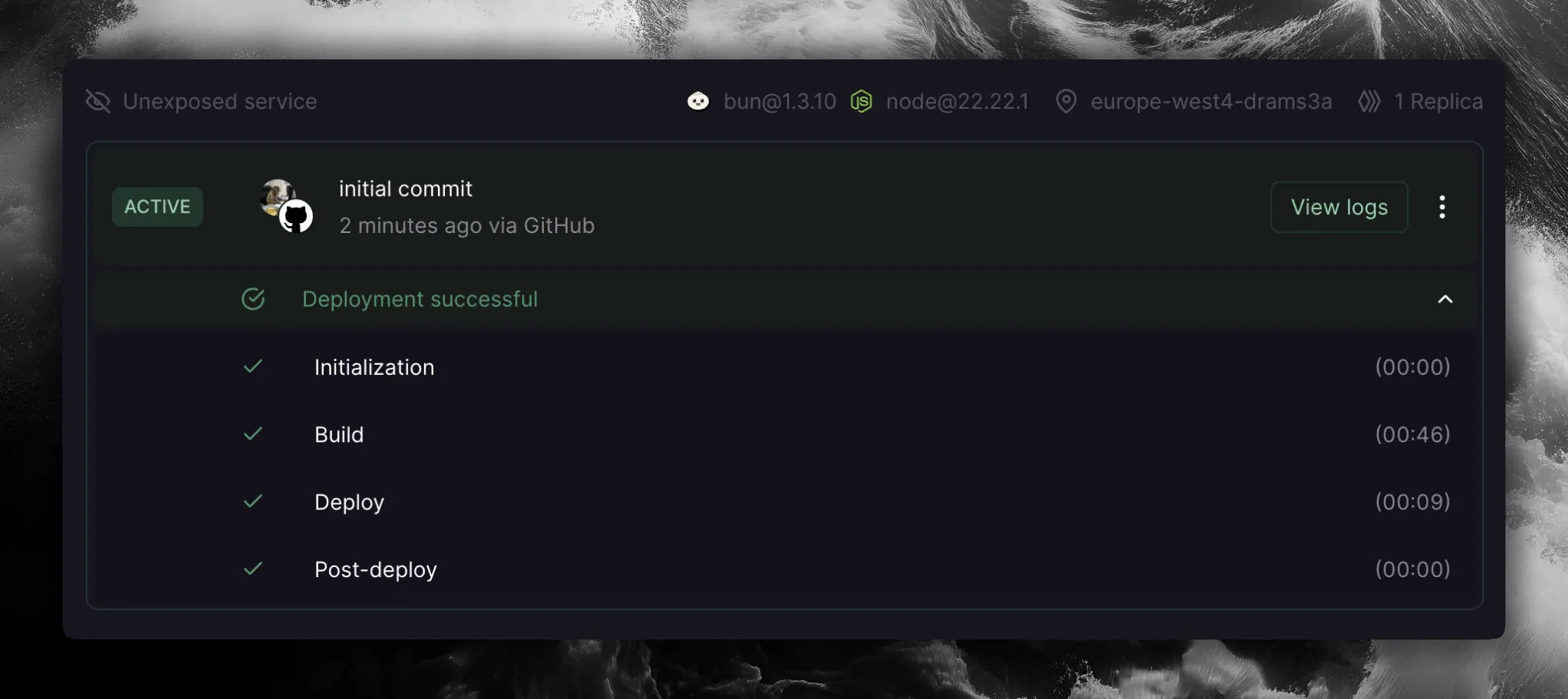 Once deployed, navigate to the Architecture tab in your Railway project. You should see your application service connected to the PostgreSQL database.