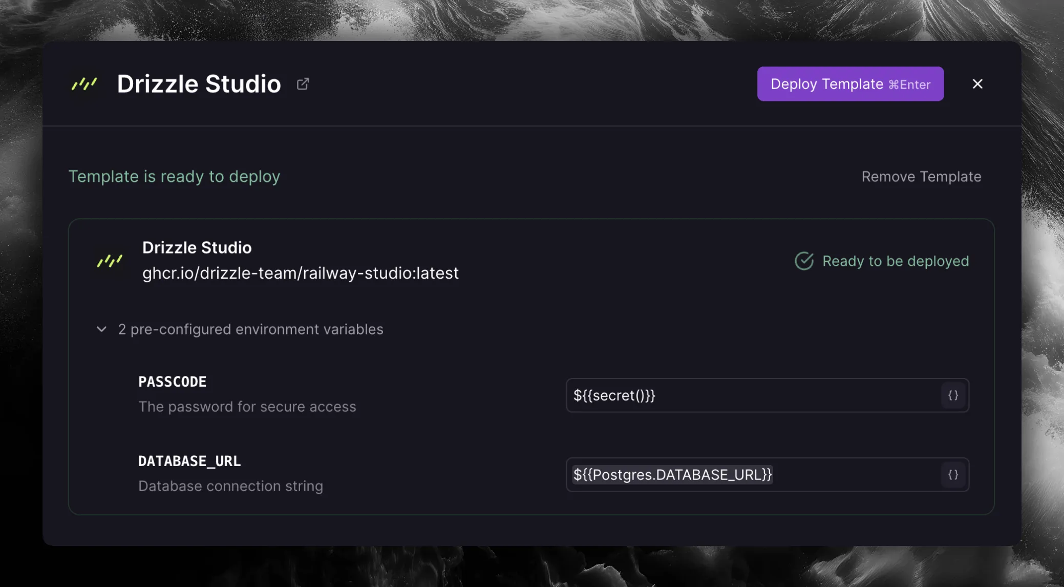 You can deploy Drizzle Studio alongside your application on Railway to browse and manage your database directly from the browser. You can use the Drizzle Studio Railway template or follow the steps below.